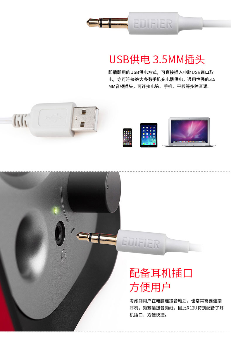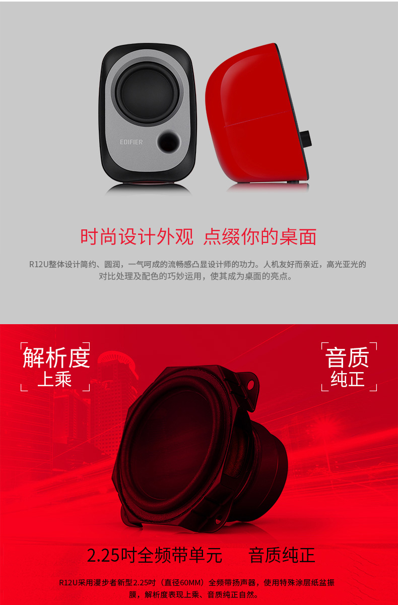 Edifier/漫步者 R12U台式电脑音响低音炮家用迷你笔记本小音箱USB