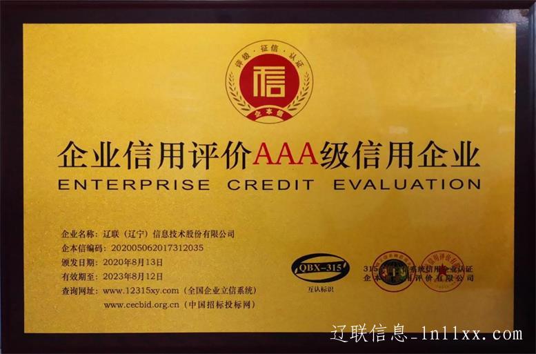 辽联信息获评“全国AAA级信用企业”